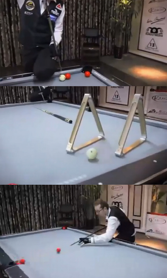 '물리학 무시 묘기 당구'라는 글과 함께 한 편의 영상이 게재됐다.