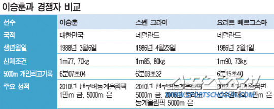 이승훈이 5000m에서 메달을 따내려면 28세 동갑내기 네덜란드 듀오를 넘어야 한다. 스벤 크라머와 요리트 베르그스마다.