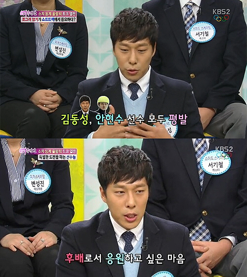이에 김동성은 "안현수는 2002년 전부터 선·후배 사이로 태릉에 함께 있었다"며 "귀화했다고 해서 미워할 것도 없고 후배로서 응원해주고 싶다"고 솔직하게 말했다.