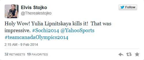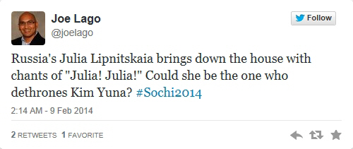 금메달 직후 트위터 등 SNS에는 그녀에 대한 호평과 찬사가 줄을 이었다. 세계선수권 3차례 우승에 빛나는 캐나다 출신 남자피겨 레전드 엘비스 스토이코는 '세상에 와우! 율리아가 해냈다. 정말 인상적이었다'라는 멘션으로 기대감을 표했다. 야후스포츠의 조 라고 기자는 "러시아의 율리아가 '율리아! 율리아!' 함성으로 링크를 가득 채웠다. 그녀는 김연아의 왕관을 빼앗을 수 있을까"라며 슬쩍 김연아를 언급했다. 시카고 트리뷴과 로스엔젤레스타임즈에서 일하는 필립 허시 기자 역시 '15세 링크를 접수할 자격이 있다'고 썼다.