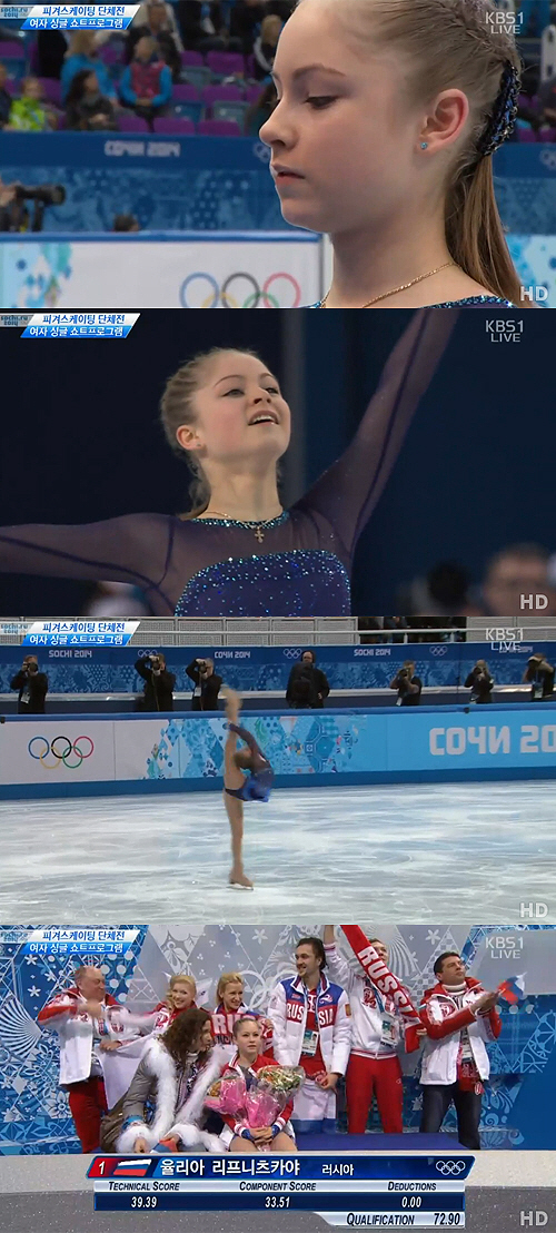 러시아 관중들과 다른 동료들 모두 율리아 리프니츠카야의 점수에 흥분했지만, 오히려 당사자는 덤덤한 표정으로 입가에 살짝 미소만 짓는 등 어린 나이에도 차분하고 담대한 모습을 보여 눈길을 끌었다.