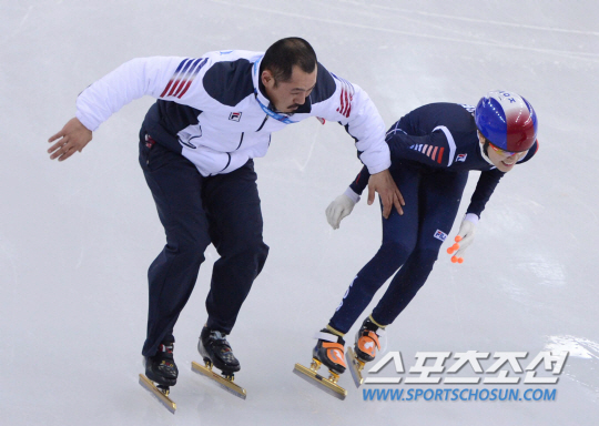 9일 오후(한국시간) 2014 소치 동계올림픽 스케이팅 훈련장에서 한국 쇼트트랙 선수들의 훈련이 열렸다. 최광복 코치가 김아랑과 코너에서의 몸싸움 훈련을 하고 있다. 한국은 이번 소치 올림픽에 아이스하키를 제외한 6개 종목에 동계 올림픽 사상 최대 규모인 선수 71명을 파견했다. 임원 49명을 포함한 선수단 규모도 120명으로 역대 최대. 역대 최대 규모의 선수단을 파견하는 한국은 메달 12개(금 4개·은 5개·동 3개)를 수확, 2006년 토리노·2010년 밴쿠버 대회에 이어 3회 연속 종합 10위권 내에 이름을 올리겠다는 목표를 세웠다. 소치(러시아)= 김경민 기자 kyungmin@sportschosun.com