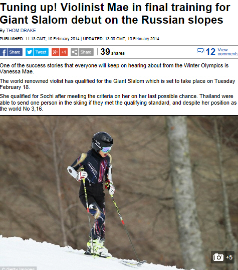 한편, 데일리 메일은 '바네사 메이의 이야기가 소치동계올림픽의 성공적인 스토리 중 하나가 될 것'이라며 메이의 도전에 박수를 보냈다.