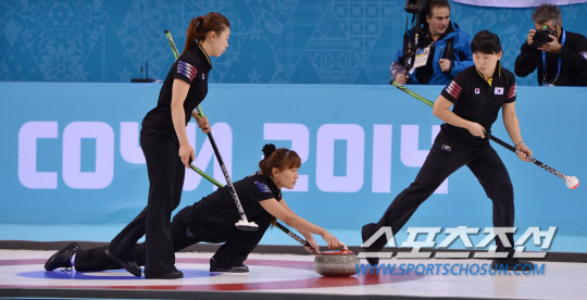 11일 오후(한국시간) 2014 소치 동계올림픽 아이스 큐브 컬링 센터에서 한국 여자 컬링 대표팀과 일본의 경기가 열렸다. 한국 김은지가 스톤을 던지고 있다. 한국은 이번 소치 올림픽에 아이스하키를 제외한 6개 종목에 동계 올림픽 사상 최대 규모인 선수 71명을 파견했다. 임원 49명을 포함한 선수단 규모도 120명으로 역대 최대. 역대 최대 규모의 선수단을 파견하는 한국은 메달 12개(금 4개·은 5개·동 3개)를 수확, 2006년 토리노·2010년 밴쿠버 대회에 이어 3회 연속 종합 10위권 내에 이름을 올리겠다는 목표를 세웠다. 소치(러시아)= 김경민 기자 kyungmin@sportschosun.com
