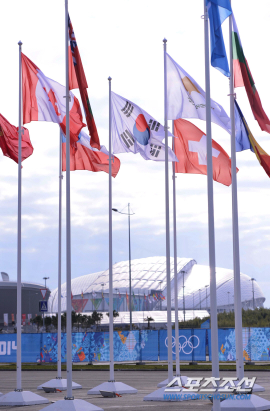 5일 오후(한국시간) 2014 소치 동계올림픽 선수촌 국기광장에서 대한민국 선수단의 공식 입촌식이 열렸다. 올림픽 피시트 스타디움을 배경으로 태극기가 휘날리고 있다. 한국은 이번 소치 올림픽에 아이스하키를 제외한 6개 종목에 동계 올림픽 사상 최대 규모인 선수 71명을 파견했다. 임원 49명을 포함한 선수단 규모도 120명으로 역대 최대. 역대 최대 규모의 선수단을 파견하는 한국은 메달 12개(금 4개·은 5개·동 3개)를 수확, 2006년 토리노·2010년 밴쿠버 대회에 이어 3회 연속 종합 10위권 내에 이름을 올리겠다는 목표를 세웠다. 소치 올림픽은 8일 오전 1시 14분(한국시간) 개막식을 시작으로 열전에 돌입하며 23일 폐막한다. 소치(러시아)= 김경민 기kyungmin@sportschosun.com