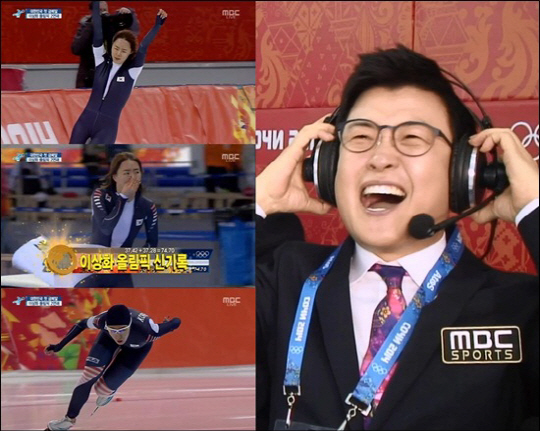 MBC 스포츠 캐스터로 나선 김성주가 올림픽 신기록을 세우며 금메달을 목에 건 '빙속 여제' 이상화의 경기에 벅찬 감동을 전했다.