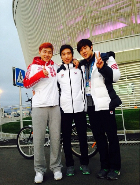 공개된 사진에는 안현수와 김윤재, 최재우가 나란히 서서 카메라를 향해 환한 미소를 짓고 있다.