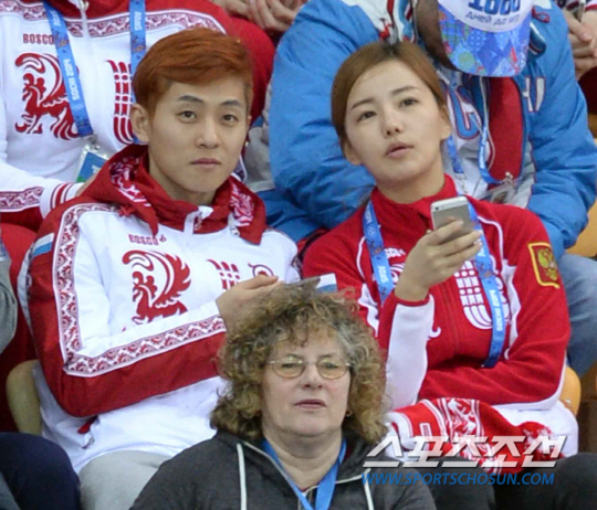 11일 오후(한국시간) 2014 소치 동계올림픽 아들레르 아레나 스케이팅 센터에서 여자 스피드 스케이팅 500m 1차시기 경기가 열렸다. 경기장을 찾은 러시아 빅토르 안(안현수)이 여자친구 우나리와 경기를 지켜보고 있다. 한국은 이번 소치 올림픽에 아이스하키를 제외한 6개 종목에 동계 올림픽 사상 최대 규모인 선수 71명을 파견했다. 임원 49명을 포함한 선수단 규모도 120명으로 역대 최대. 역대 최대 규모의 선수단을 파견하는 한국은 메달 12개(금 4개·은 5개·동 3개)를 수확, 2006년 토리노·2010년 밴쿠버 대회에 이어 3회 연속 종합 10위권 내에 이름을 올리겠다는 목표를 세웠다. 소치(러시아)= 김경민 기자 kyungmin@sportschosun.com