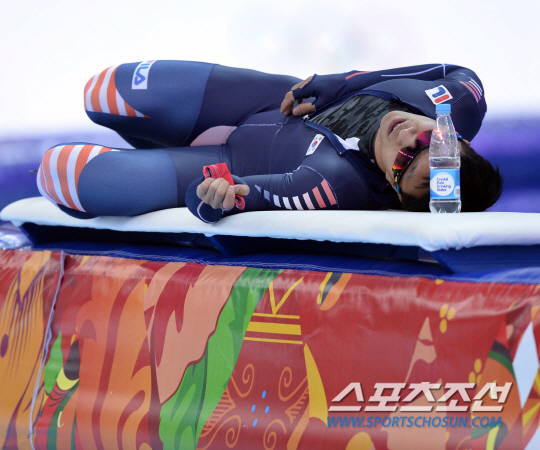 12일 오후(한국시간) 2014 소치 동계올림픽 아들레르 아레나 스케이팅 센터에서 스피드 스케이팅 남자 1000m 경기가 열렸다. 경기를 마친 한국 이규혁이 간이 의자에 눕고 있다. 한국은 이번 소치 올림픽에 아이스하키를 제외한 6개 종목에 동계 올림픽 사상 최대 규모인 선수 71명을 파견했다. 임원 49명을 포함한 선수단 규모도 120명으로 역대 최대. 역대 최대 규모의 선수단을 파견하는 한국은 메달 12개(금 4개·은 5개·동 3개)를 수확, 2006년 토리노·2010년 밴쿠버 대회에 이어 3회 연속 종합 10위권 내에 이름을 올리겠다는 목표를 세웠다. 소치(러시아)= 김경민 기자 kyungmin@sportschosun.com / 2014.02.12.