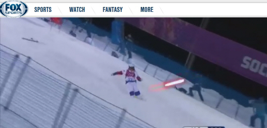이 영상은 한 모굴 스키 선수가 수많은 굴곡진 턱을 넘어 슬로프를 내려오면서 넘어지는 장면 때 스타워즈에 등장하는 외계인이 쏜 레이저에 맞은 것처럼 편집했다.