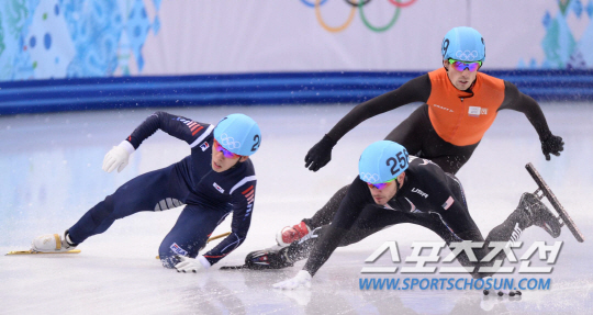 13일 오후(한국시간) 2014 소치 동계올림픽 아이스버그 스케이팅 팰리스에서 남자 쇼트트랙 5000m 릴레이 경기 준결승전이 열렸다. 경기에서 이호석이 미국 선수와 충돌하고 있다. 한국은 이번 소치 올림픽에 아이스하키를 제외한 6개 종목에 동계 올림픽 사상 최대 규모인 선수 71명을 파견했다. 임원 49명을 포함한 선수단 규모도 120명으로 역대 최대. 역대 최대 규모의 선수단을 파견하는 한국은 메달 12개(금 4개·은 5개·동 3개)를 수확, 2006년 토리노·2010년 밴쿠버 대회에 이어 3회 연속 종합 10위권 내에 이름을 올리겠다는 목표를 세웠다. 소치(러시아)= 김경민 기자 kyungmin@sportschosun.com