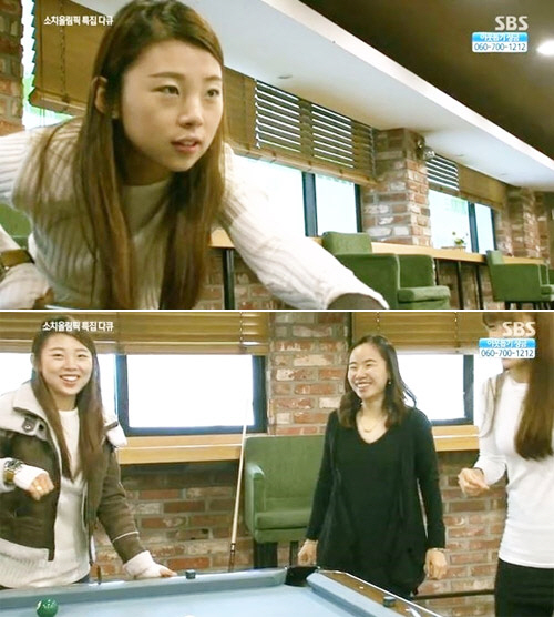 지난달 1일 방송된 SBS 2014 소치 올림픽 특집 다큐 '뜨거운 날의 도전'에는 여자 컬링 국가대표 이슬비, 김은지, 김지선, 엄민지가 포켓볼을 치는 모습이 그려졌다.