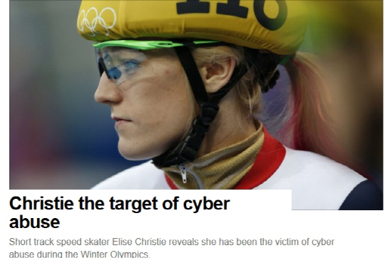 영국 BBC는 16일 소치올림픽에 출전중인 자국 쇼트트랙 선수 앨리스 크리스티를 향한 '사이버 악플'에 우려를 표했다. 동계올림픽 페이지 톱기사로 올리며 관심을 반영했다.
