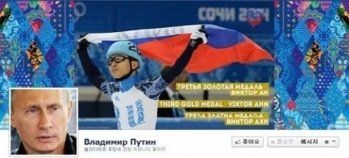 러시아 블라디미르 푸틴 대통령의 공식 페이스북 커버 사진이 안현수 사진으로 바뀌었다.