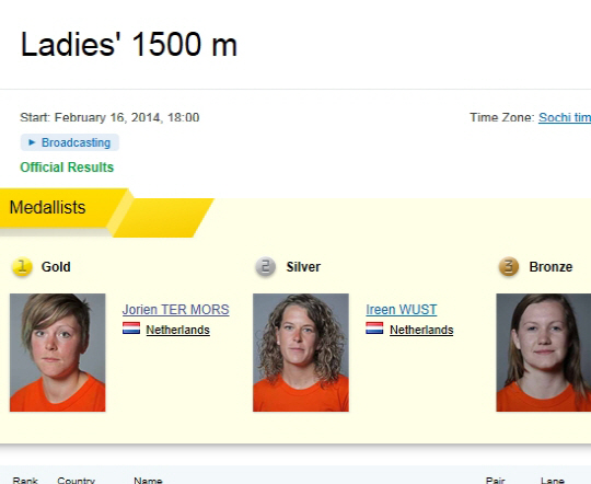 2014년 소치올림픽에선 여자로는 최초로 쇼트트랙과 스피드스케이팅에 동시에 출전하는 선수가 등장했다. 전업이 쇼트트랙이고, 부업이 스피드스케이팅인 네덜란드의 요리엔 테르 모르스(25)가 주인공이다. 그는 약 300명이 포진한 스피드스케이팅과 쇼트트랙 출전 선수 중 유일하게 두 종목에 모두 나섰다. 쇼트트랙이 1992년 알베르빌 대회부터 올림픽 정식 종목에 채택된 이후 두 종목에 모두 출전한 여자 선수는 모르스가 처음이다.
