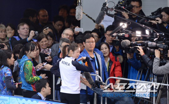 김연아에게 쏠린 눈은 상상을 초월합니다. 구름 인파를 몰고 다닙니다. 김연가가 뜨면 적게는 100명, 많게는 200명의 취재진이 운집합니다. 경기가 한창이지만 훈련이 더 관심입니다. 한국은 물론 일본, 미국, 러시아 등 국적 불문입니다. 유명세에 입이 다물어지지 않습니다.