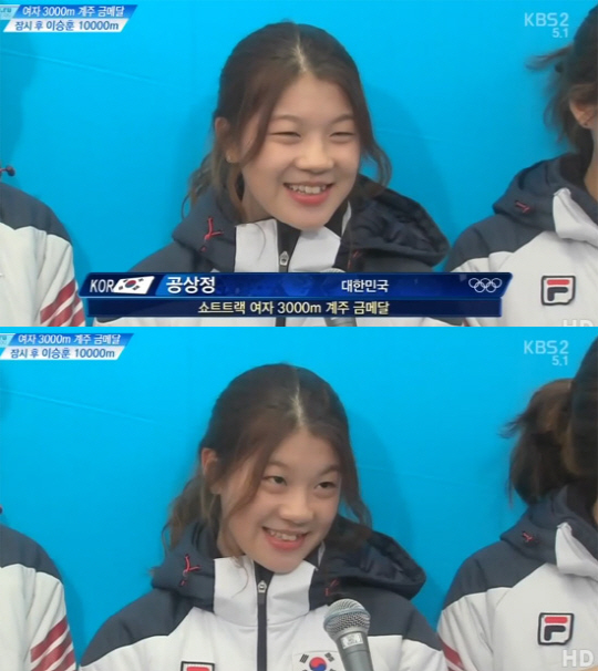 한국 여자 쇼트트랙 대표팀이 3000m 계주에서 금메달을 차지한 가운데, 공상정(18, 유봉여고)이 귀여운 외모로 뜨거운 관심을 받고 있다.