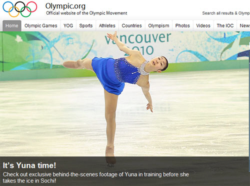 국제올림픽위원회 IOC가 '김연아의 시간이 왔다'며 김연아 경기날에 맞춰 공식 홈페이지 메인을 김연아로 꾸몄다.