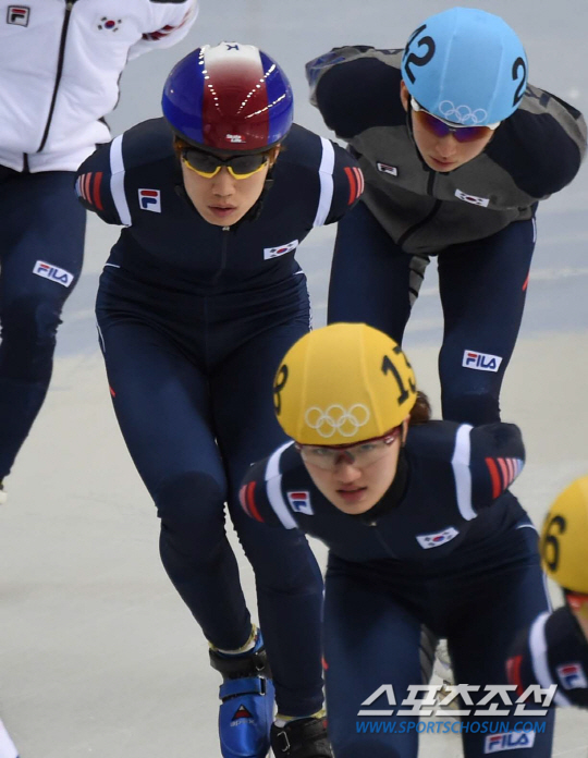 16일 오후(한국시간) 2014 소치 동계올림픽 스케이팅 훈련장에서 한국 쇼트트랙 선수들의 훈련이 열렸다. 훈련에서 박승희와 이한빈 등 선수들이 트랙을 돌고 있다. 소치(러시아)= 김경민 기자 kyungmin@sportschosun.com / 2014.02.16.