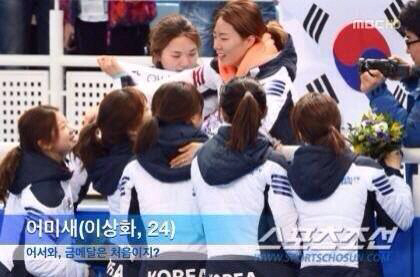 플라워 세리머니 직후 대표팀 선수들이 관중석의 이상화와 박승주를 향해 달려왔다. 펜스를 사이에 두고 금메달의 기쁨을 나눴다. 함께 눈물을 쏟았다. 카메라가 이 장면을 놓치지않았다. 관중석 펜스가 높았던 탓에 사진은 흡사 이상화가 선수들에게 모이를 주는 것처럼 찍혔다. 한 네티즌의 기지가 발동했다. 스포츠조선의 사진 위에 '어미새(이상화, 24)'라는 캡션을 달았다. '어서와, 금메달은 처음이지?'라고 덧붙였다. 소름끼치게 짜릿했던 금메달에 들뜬 팬들은 '어미새 사진'을 SNS로 퍼날렀다.