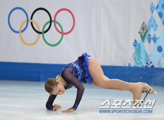 러시아 율리아 리프니츠카야가 쇼트프로그램을 연기하던 도중 넘어지고 있다. 소치(러시아)= 김경민 기자 kyungmin@sportschosun.com / 2014.02.20.