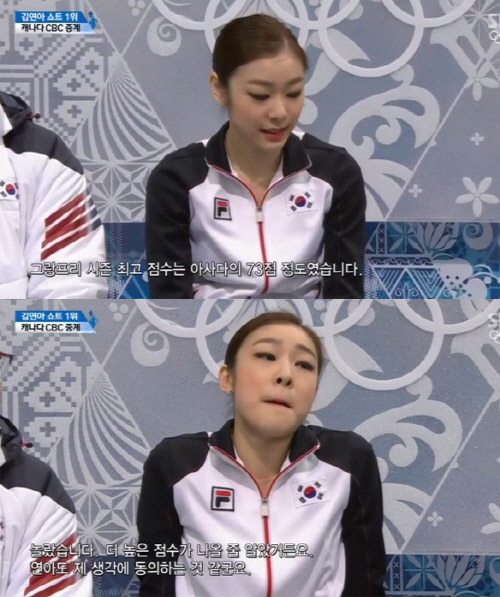 김연아가 쇼트프로그램 점수를 확인하고 내뱉은 혼잣말이 네티즌들 사이에서 화제다.
