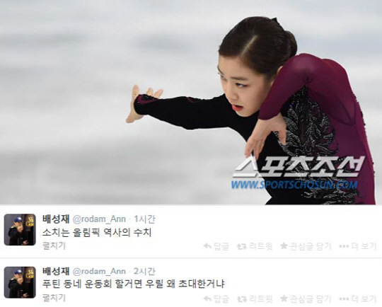 배성재 아나운서는 21일 자신의 트위터에 "푸틴 동네 운동회 할 거면 우릴 왜 초대한 거냐"라는 글을 올렸다. 이어 "소치는 올림픽 역사의 수치"라며 글을 연이어 게재했다.