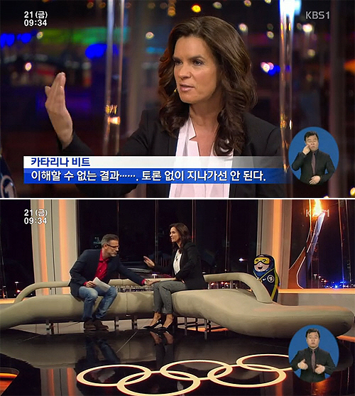 이어 카타리나 비트는 "금메달을 딴 러시아 선수를 비하해선 안 된다. 하지만 이해할 수 없다"고 재차 강조했다. 카타리나 비트는 인터뷰 내내 격앙된 마음을 드러냈고, 흥분이 더욱 거세지자 남자 사회자가 달래기까지 했다.