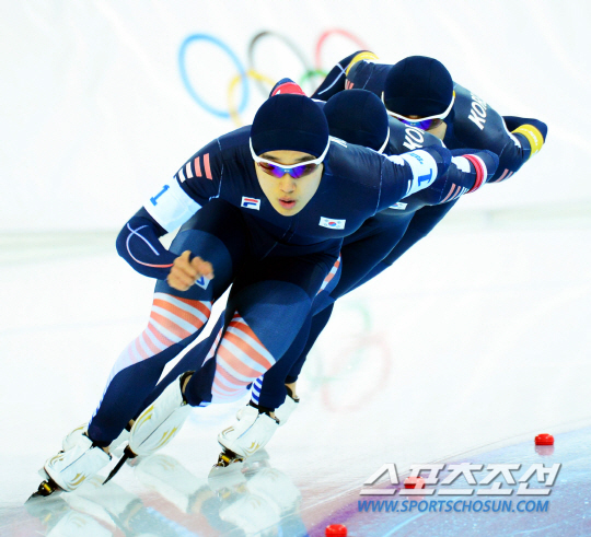 이승훈, 주형준, 김철민 등 남자 스피드 스케이팅 대표팀 선수들이 22일 소치 해안 클러스터의 아들레르 아레나에서 열린 남자 팀추월 캐나다와의 준결승 경기에서 질주하고 있다. 소치(러시아)=김경민 기자 kyungmin@sportschosun.com