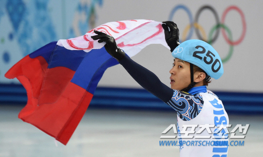 22일 오전(한국시간) 2014 소치 동계올림픽 아이스버그 스케이팅 팰리스에서 쇼트트랙 남자 500m 결승 경기가 열렸다. 러시아 빅토르안(안현수)이 1위를 한 후 러시아 국기를 들고 환호하고 있다. 소치(러시아)= 김경민 기자 kyungmin@sportschosun.com