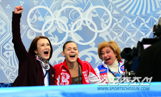 러시아 피겨 대표팀 아델리나 소트니코바가 20일 (현지 시간) 소치 해안 클러스터의 아이스버그 스케이팅 팰리스에서 열린 여자 프리 경기에서 연기를 마친 뒤 키스 앤 크라이 존에서 만족감을 나타내고 있다. 소치(러시아)= 김경민 기자 kyungmin@sportschosun.com / 2014.02.21.