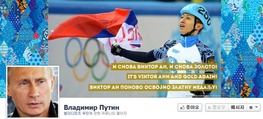 블라디미르 푸틴 대통령은 페이스북 팬 페이지 커버 사진을 안현수가 러시아 국기를 들고 환호하는 사진으로 변경했다.