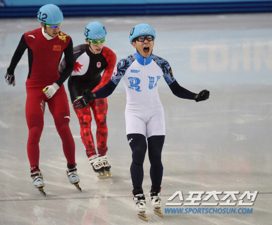 22일 오전(한국시간) 2014 소치 동계올림픽 아이스버그 스케이팅 팰리스에서 쇼트트랙 남자 1000m 결승 경기가 열렸다. 1위를 차지한 안현수가 환호하고 있다. 소치(러시아)= 김경민 기자 kyungmin@sportschosun.com / 2014.02.22.