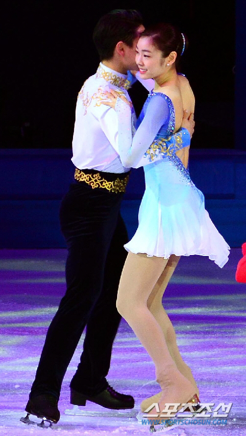 이날 김연아는 이번 대회 남자 싱글 동메달리스트인 카자흐스탄의 데니스 탄(20)과 짝을 이뤄 호흡을 맞췄다.