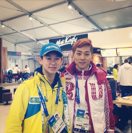 '피겨퀸' 김연아 갈라쇼 파트너로 화제를 모으고 있는 데니스 텐이 안현수와의 인증샷을 공개했다.