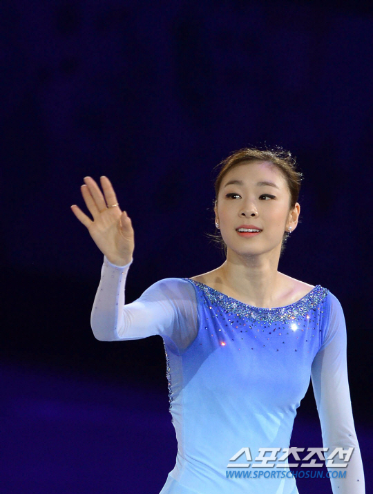 피겨 스케이팅 대표팀의 김연아가 23일 소치 해안 클러스터의 아이스버그 스케이팅 팰리스에서 진행된 갈라쇼에서 무대를 마친 뒤 인사를 하고 있다. 소치(러시아)= 김경민 기자 kyungmin@sportschosun.com / 2014.02.23.