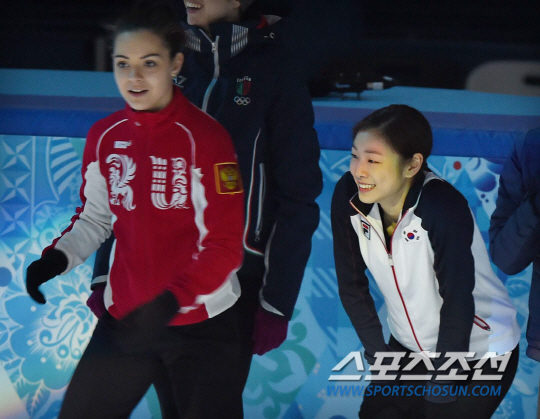 22일 오후(한국시간) 2014 소치 동계올림픽 아이스버그 스케이팅 팰리스에서 피겨스케이팅 갈라쇼의 리허설이 열렸다. 김연아와 러시아 아델리나 소트니코바가 갈라쇼 연습 도중 밝게 웃고 있다. 소치(러시아)= 김경민 기자 kyungmin@sportschosun.com / 2014.02.22. |
