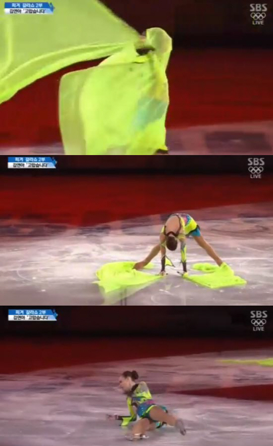 그러나 소트니코바는 깃발에 스케이트가 걸려 제대로 중심을 못 잡고 휘청거리더니 두 손으로 얼음을 짚었다. 또 깃발에 시야가 가려져 허둥거리거나 불안한 착지는 물론 빙상 위를 구르는 등 다소 난해한 안무로 보는 이들의 눈살을 찌푸리게 했다.