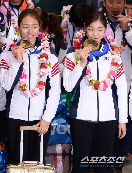 소치올림픽에 출전했던 한국선수단 본단이 17일간의 대장정을 마치고 25일 오후 인천공항을 통해 귀국했다. 이날 귀국한 본단에는 올림픽 2연패를 노렸지만 판정논란속에 은메달에 그친 김연아와 스피드스케이팅 여자 500m에서 올림픽 2연패를 이룬 이상화, 쇼트트랙 여자 3000m 계주와 1000m에서 우승해 2관왕에 오른 박승희, 쇼트트랙에서 금·은·동메달 하나씩을 수확한 심석희등 90여명의 선수, 임원, 지도자들이 포함됐다. 한편, 종합 10위권을 노렸던 한국 선수단은 금메달 3개, 은메달 3개, 동메달 2개로 종합순위 13위의 성적을 올렸다. 인천공항=최문영 기자 deer@sportschosun.com /2014.02.25/ |