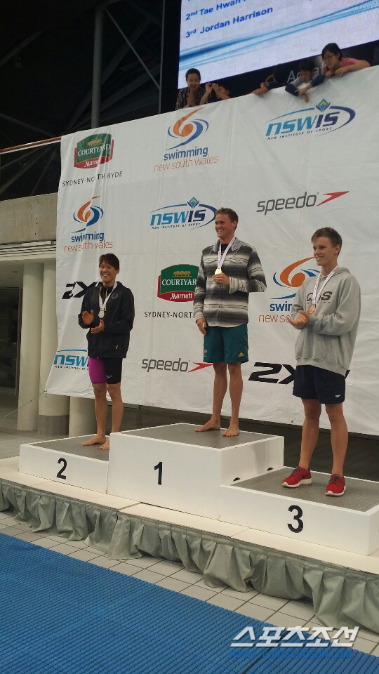 박태환은 2일 오후(한국시각) 호주 시드니 올림픽파크아쿠아틱센터에서 열린 뉴사우스웨일스(NSW) 스테이트 오픈 챔피언십 남자자유형 1500m에서 15분3초38의 기록으로 2위에 올랐다. 1위 맥 호턴과 0.09초차로 아깝게 3관왕을 놓쳤다. 박태환은 지난달 28일 자유형 400m 금메달(3분43초96), 자유형 100m '한국신(48초42)' 동메달, 1일 자유형 200m 금메달(1분46초05)을 따냈다. .