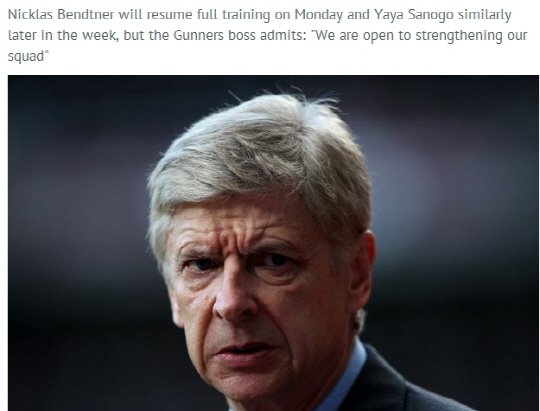 아스널에게도 기회는 있었다. 1월이적시장에서 미드필드진과 공격진을 수혈하려고 했다. 충분한 이적자금도 있었다. 아스널은 여러 슈퍼스타들과 연결됐다. 율리안 드락슬러(샬케), 잭슨 마르티네스(포르투), 알바로 모라타(레알 마드리드), 요앙 카바예(PSG) 등에 러브콜을 보냈지만, 결국 킴 칼스트룀 1명을 데려오는데 그쳤다. 드락슬러의 경우 마지막까지 협상이 이어졌지만, 10대 선수에게 거금을 쓰는 것이 마음에 걸렸던 아르센 벵거 감독이 결국 고개를 돌렸다. 그나마 유일하게 데려온 칼스트룀마저 부상으로 아직 한 경기에도 나서지 못하고 있다. 결국 아스널은 8년 무관을 깨기 위한 마지막 전력보강의 기회마저 놓쳐버렸다.