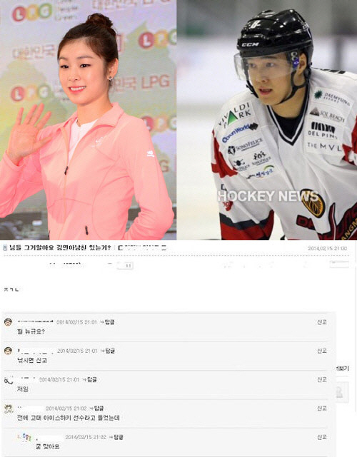 지난 2월 15일 온라인 커뮤니티에는 '김연아 김원중 열애 성지글'이 올라왔다. 작성자는 네티즌은 '님들 그거알아요 김연아 남친 있는거?'라는 제목으로 글을 게재했고, 이에 '누구요?' '낚시면 신고' 등의 댓글이 달렸다. 이 가운데 한 네티즌이 '전에 고대 아이스하키 선수라고 들었는데'라고 주장했고, 그러자 작성자는 "맞아요"라고 답했다.