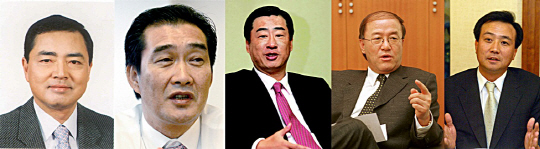 스포츠토토 사업권을 둘러싸고 물밑 쟁탈전이 뜨겁다. 왼쪽부터 홍석규 보광 회장, 유경선 유진 회장, 이만득 삼천리 회장, 윤윤수 휠라 회장, 박병엽 전 팬택 부회장.