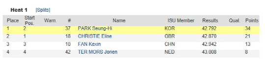 박승희는 16일 새벽(한국시각) 캐나다 몬트리올에서 열린 여자 쇼트트랙 500m 결승에서, 42초 792의 기록으로 가장 먼저 결승선을 통과했다. 영국의 엘리스 크리스티(42초870)와 중국의 판커신(42초942)을 제치고 금메달을 목에 걸었다.