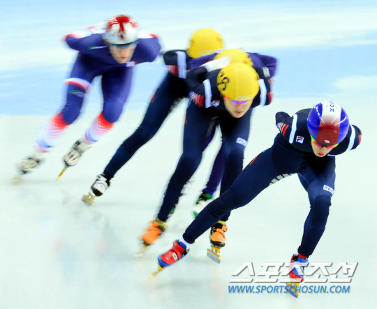 신다운(앞) 등 쇼트트랙 대표팀이 17일 소치 해안클러스터 스케이팅 트레이닝센터에서 훈련을 소화하고 있다. 소치 동계 올림픽에서 세계 최강의 면모를 잃고 있는 쇼트트랙 대표팀은 여자 계주 등 남은 종목에서 부진을 만회한다는 각오다. 안현수의 활약과 비교되며 암운이 짙게 드리운 쇼트트랙 대표팀의 절치부심에 기대가 모아진다. 소치(러시아)= 김경민 기자 kyungmin@sportschosun.com / 2014.02.17.