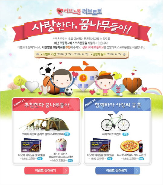 한편 이번 러브스쿨-러브토토 이벤트는 4월 23일까지 참여할 수 있으며, 같은 달 29일 스포츠토토 및 베트맨 홈페이지를 통해 당첨자를 확인할 수 있다.