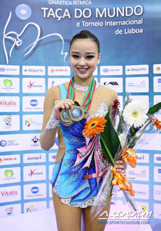 손연재는 7일 새벽(한국시각) 포르투갈 리스본에서 펼쳐진 국제체조연맹(FIG) 리스본월드컵 종목별 결선 전종목에 나서 사상 첫 개인종합 금메달을 비롯해 볼-곤봉-리본 금메달, 후프 동메달을 추가하며 대회 4관왕에 올랐다.