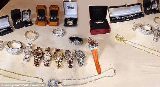 '억만장자 복서' 플로이드 메이웨더 주니어(37)가 자신의 SNS에 눈부신 명품 쥬얼리 컬렉션을 공개했다.
