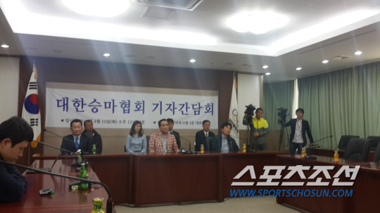 논란의 중심에 선 대한승마협회가 입을 열었다. 대한승마협회는 15일 서울 방이동 올림픽파크텔에서 기자간담회를 열고 국가대표 정모 선수 선발과정, 마사회 사용 특혜 의혹 등에 대해 사실이 아니라고 밝혔다. 김종찬 전무이사, 김덕수 심판이사, 김성칠 이사 등 7명이 나선 이날 기자간담회에서 이광종 감사는 대표로 "승마협회는 매대회마다 포인트를 전산 합산해 이에 따른 결과를 홈페이지에 공개한다. 특정 선수에 대한 특혜를 주거나 압력 행사를 하기 힘들다. 측근이 승마협회에 관여한 것 역시 사실무근이다. 선수들에 피해를 주지 않고, 협회가 빠르게 정상화되도록 힘쓰겠다. 승마협회의 명예를 실추하는 개인이나 단체에는 법적 대응도 불사하겠다"고 입장을 밝혔다.