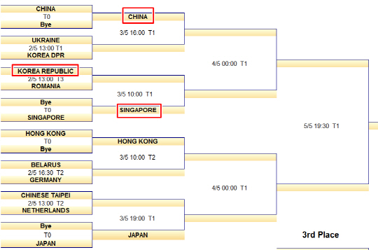 이날 밤 조추첨에서 한국의 16강 상대가 결정됐다. 왼손에이스 엘리자베타 사마라(세계랭킹 26위)가 건재한 2일 오후 1시 루마니아와 격돌한다. 이 경기에서 승리할 경우 3일 오전 10시 8강에서 또다시 펑톈웨이의 싱가포르를 만나게 된다. 30일 조별리그 4차전에서 세계8위 서효원이 세계 7위 펑톈웨이에게 패하며, 1대3으로 분패했다. 싱가포르를 상대로 사흘만의 복수혈전이 가능할지 관심이 집중되고 있다. .